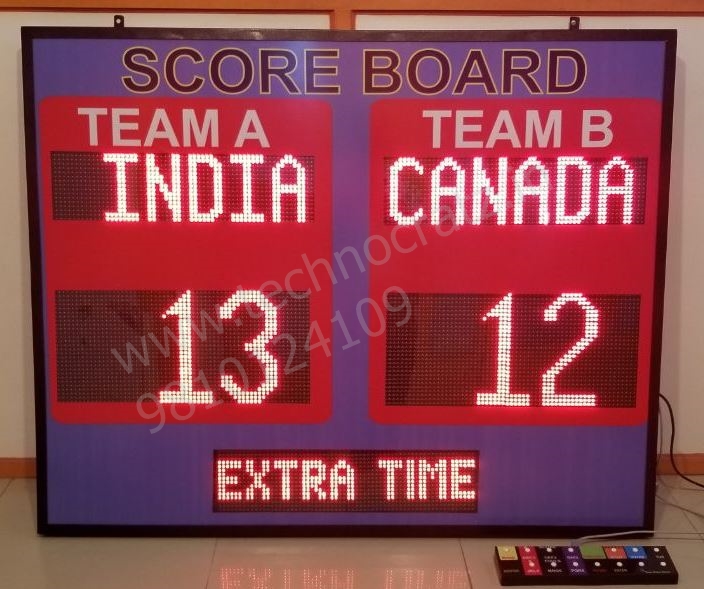 3 digit Scores of two Teams, 1 digit each for Half / Qtr & Penalties and MM:SS