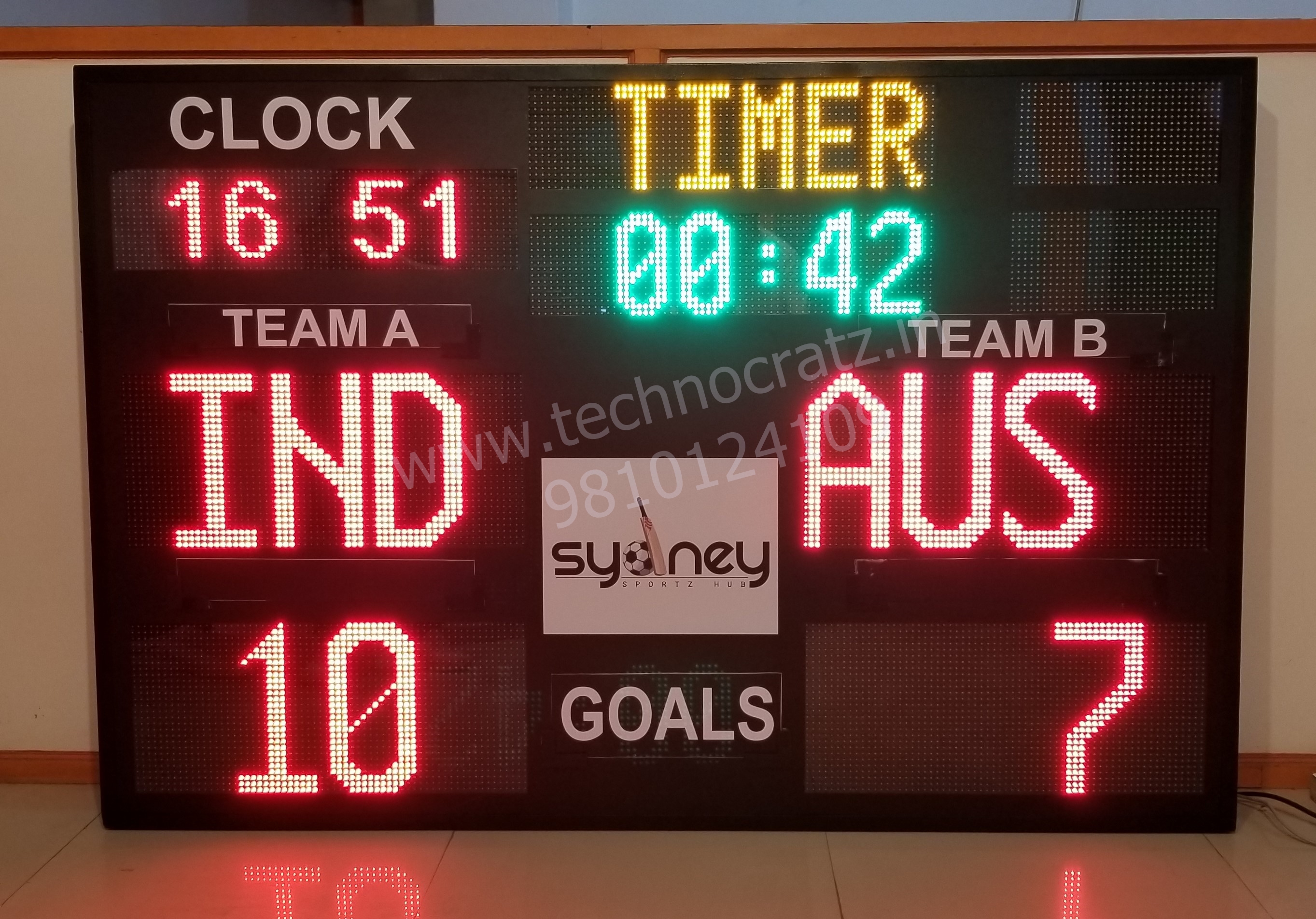 3 digit Scores of two Teams, 1 digit each for Half / Qtr & Penalties.. Running /