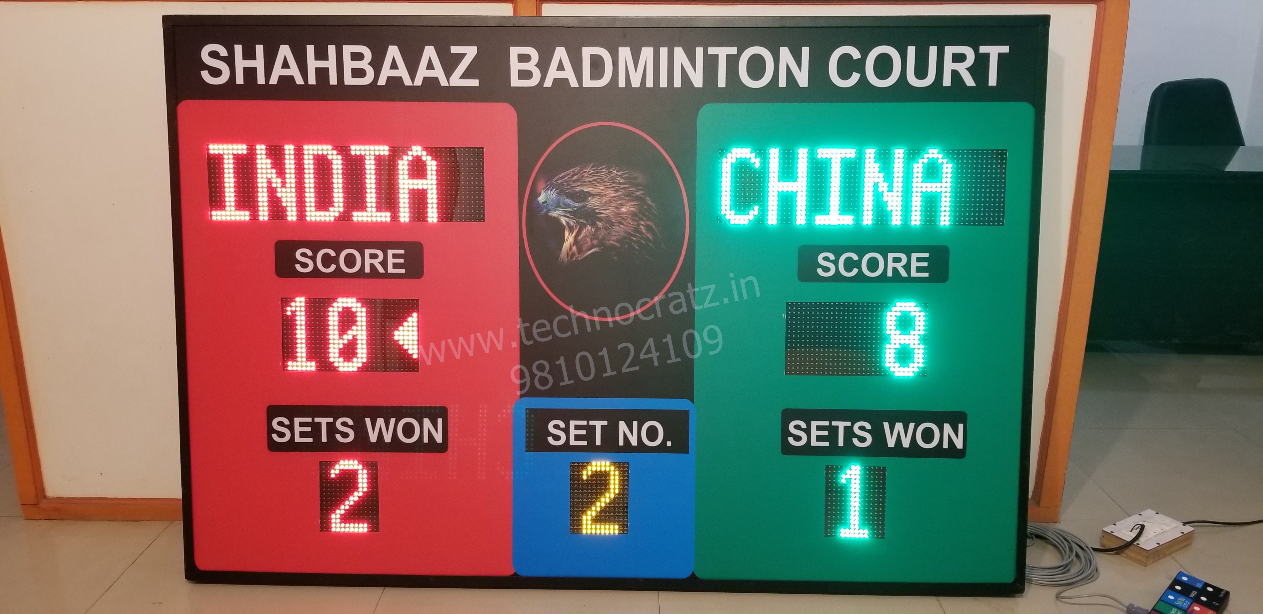 3 digit Scores of two Teams, 3 alphabets for two team Names, 1 digit each for Sets / Foul / Penalty & Half / Qtr / Sets. & MM:SS Game Timer.