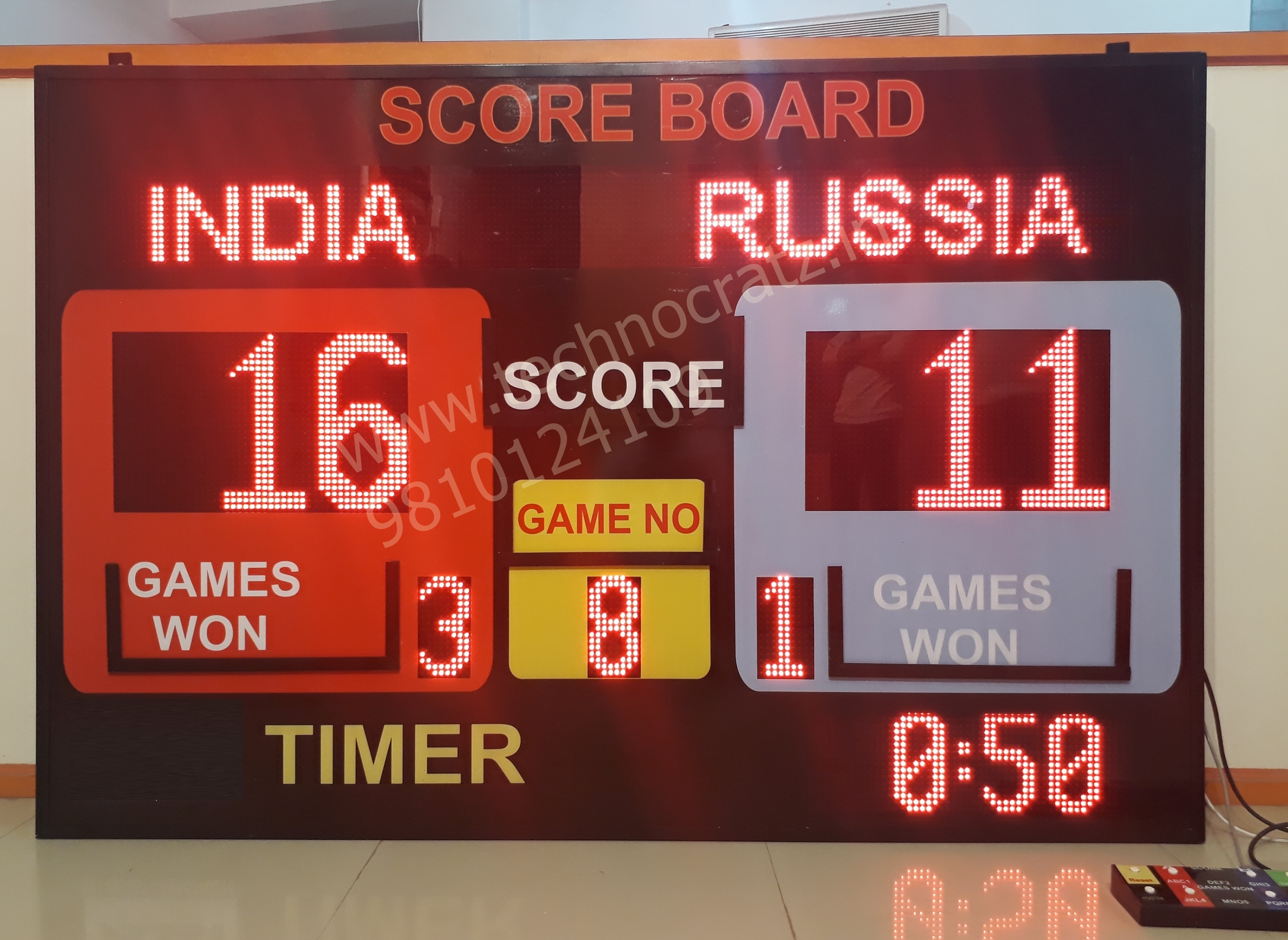3 alphabets for Team Names, 3 digit Scores of two Teams & Game Timer.