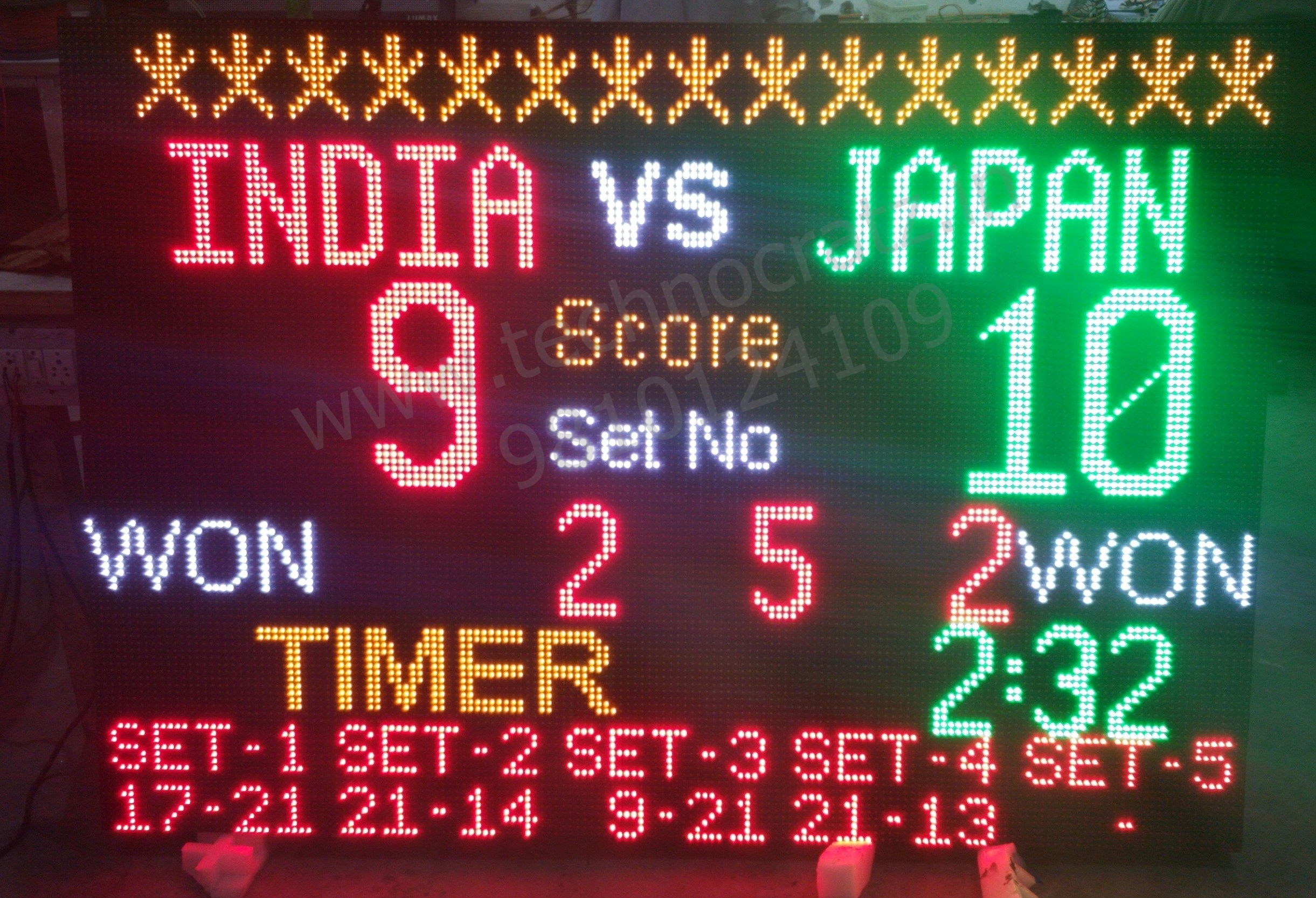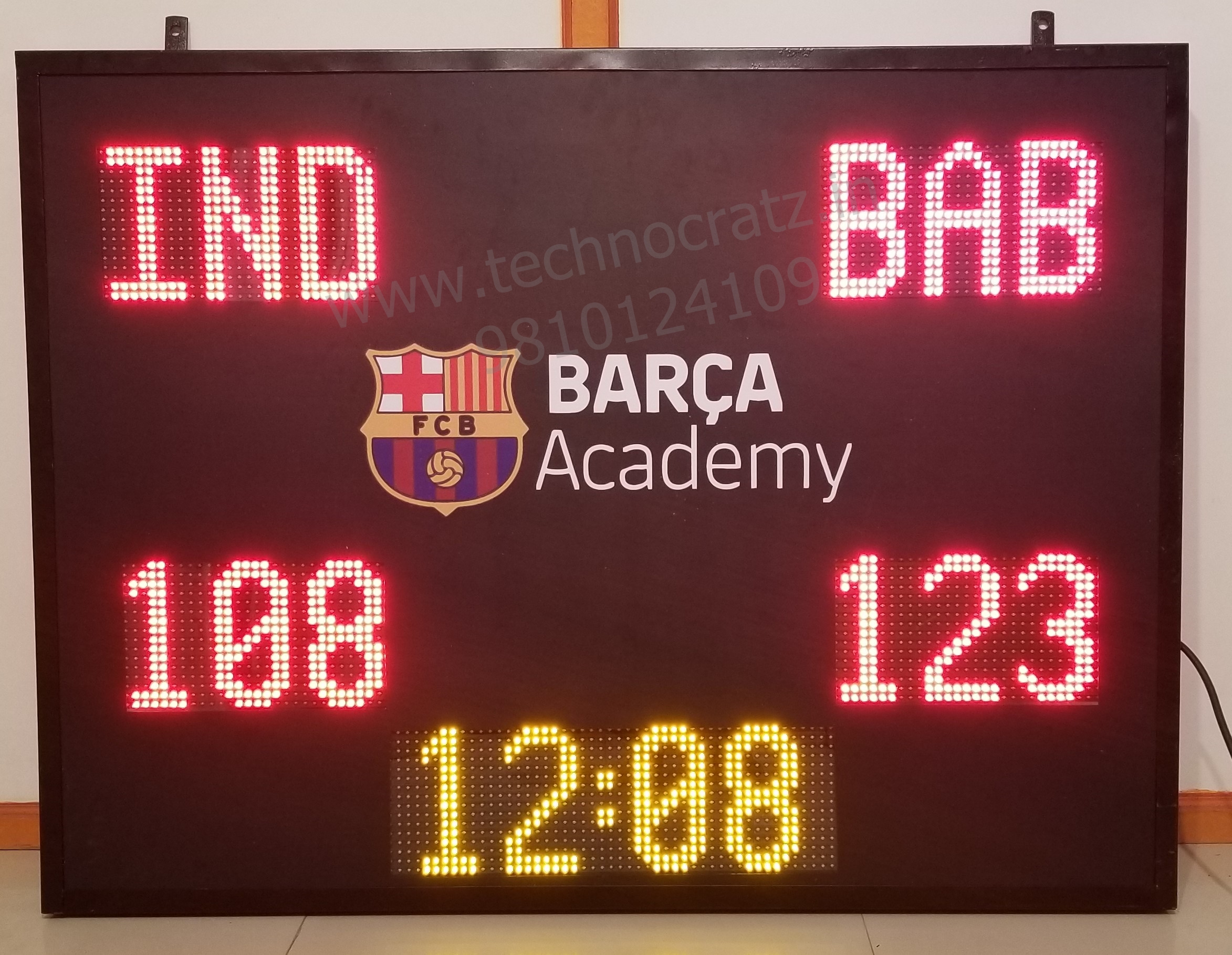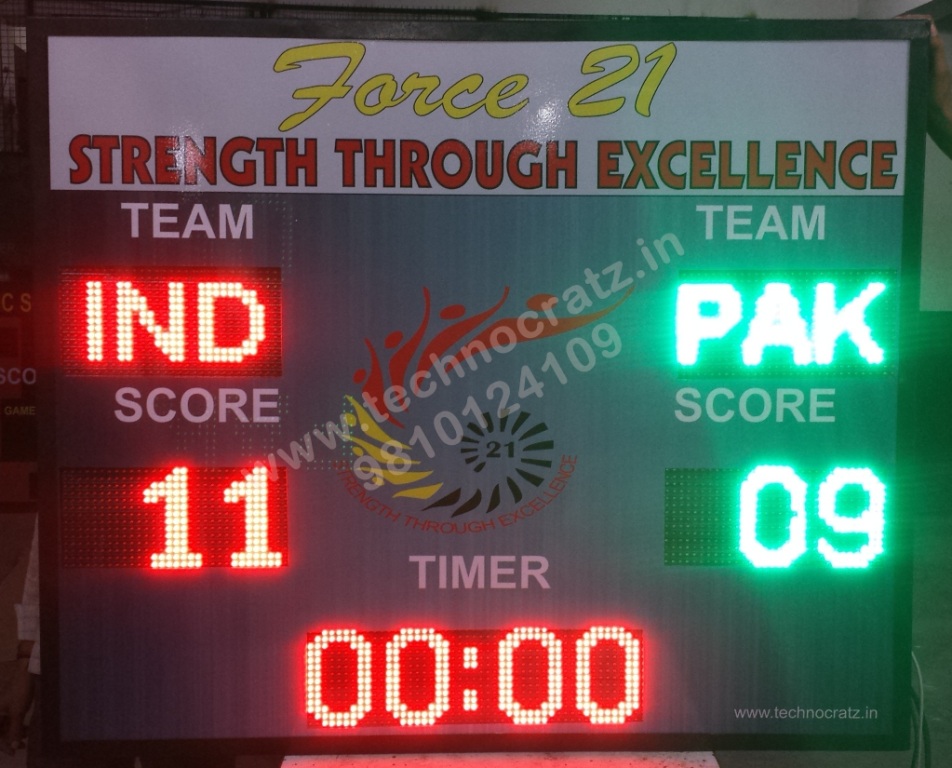 3 digit Scores of two Teams, 3 alphabets for Team Names & Game Timer.