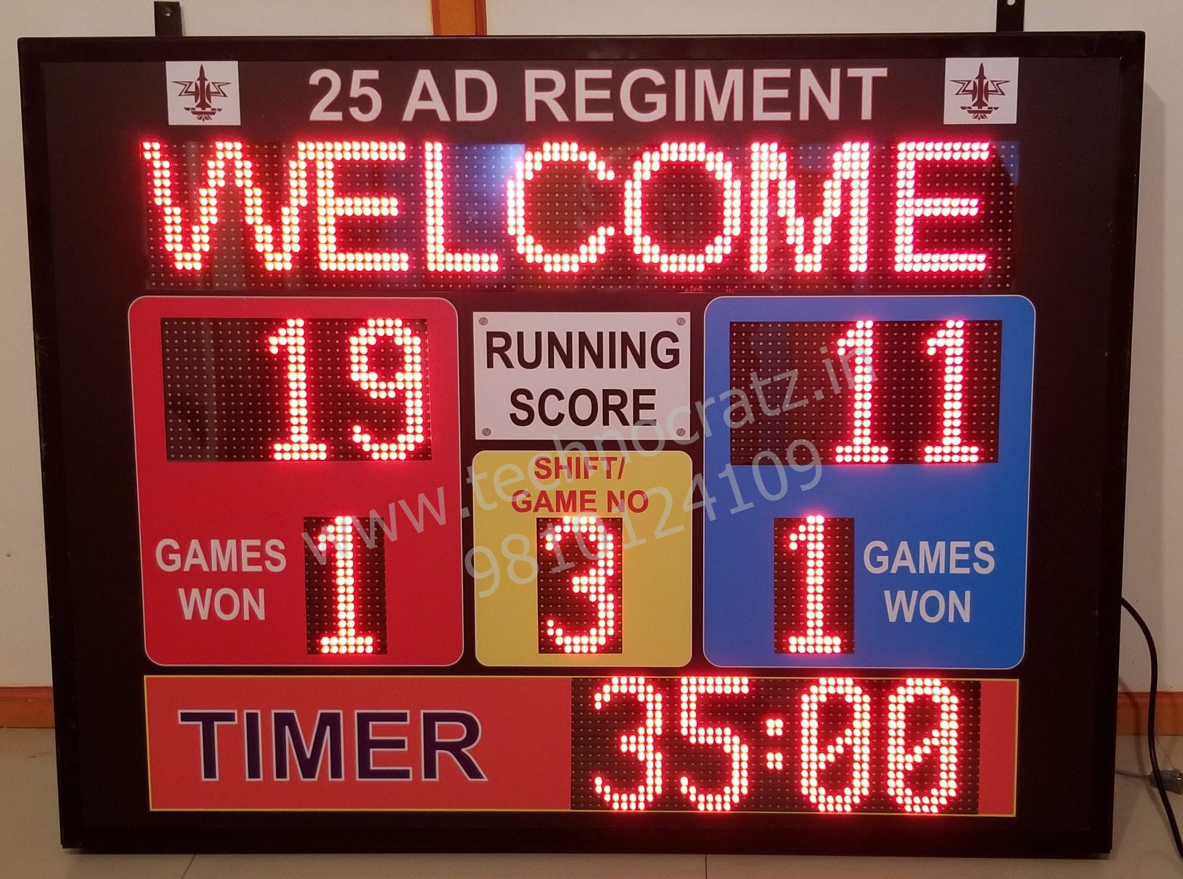 3 digit Scores of two Teams, 1 digit each for Sets / Foul / Penalty & Half / Qtr / Sets and MM:SS Game Timer.